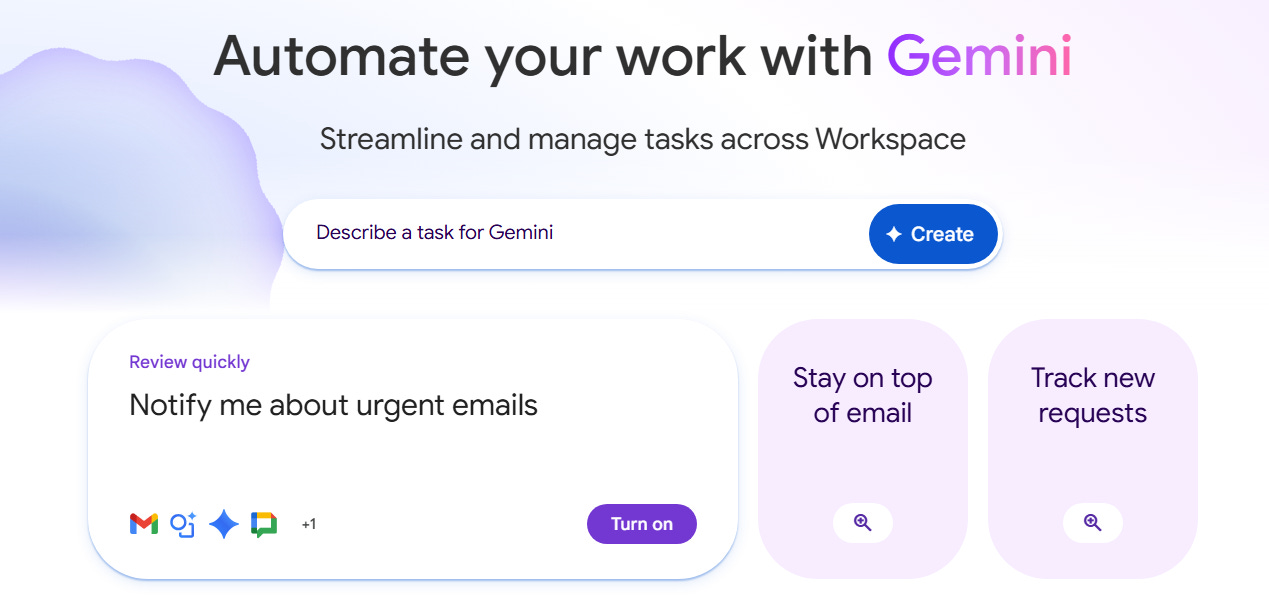 Google 推出的 Workspace Studio,讓你不用學會寫程式,只要下達指令,就能打造自動化助理。因為它內建在 Google 的生態系中,所以不需要額外設定 API 或授權,就能無縫存取你的信箱、行事曆與雲端硬碟。