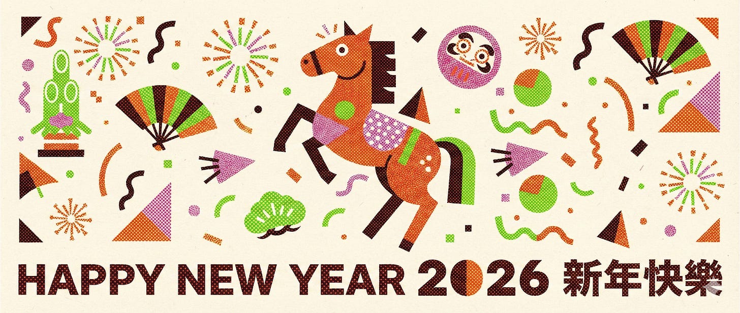 請重新設計一張直式的2026馬年賀年卡片,