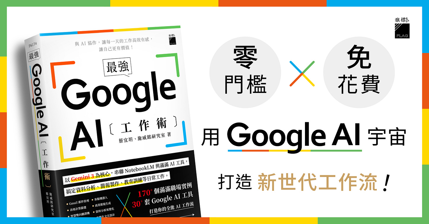 Google 是目前AI競賽的領先者,跟其他AI巨擘相比,模型能力可能還在伯仲之間,背後一整個全方位的AI生態系,才是最厲害也最不可取代的亮點。想知道怎麼讓 Google AI 可以為你所用?怎麼導入你現在的工作流程?盡在《最強!Google AI 工作術》一書,這期我們將抽出 2 本給旗旗們!