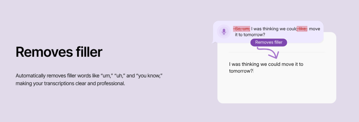 Typeless專注於幫你「打字」,而且是聽得懂人話的速記員。它利用大語言模型技術,不只能單純轉錄聲音,還能理解你的意圖。例如當你說「約明天三點...啊不對...是後天」,它會直接打出「約後天三點」,自動過濾掉口誤和贅字。