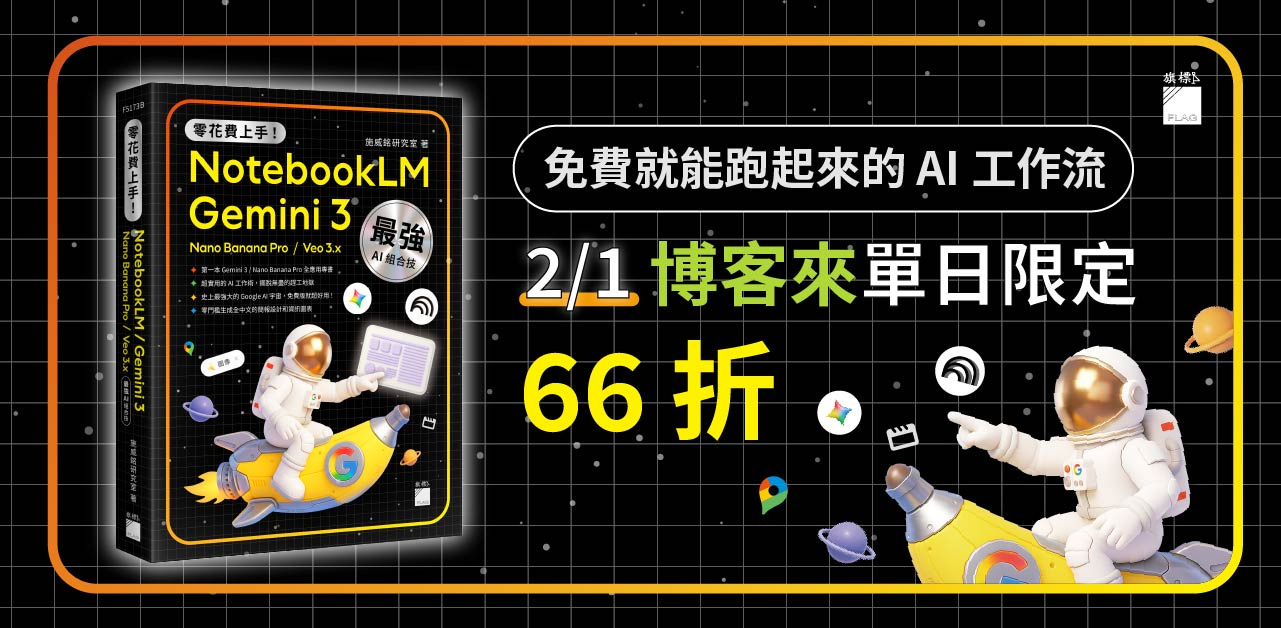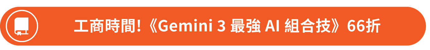 不需要訂閱付費版、不用學艱深技術,跟著實際案例一步一步做,就能把 Gemini、NotebookLM、Nano Banana、Veo 3.x變成你自己的工作流,而不是只會聊天的工具。